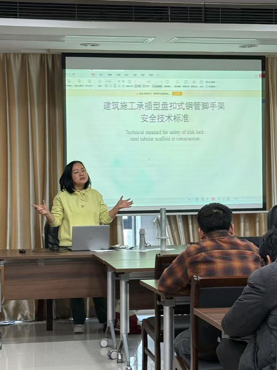 盤扣式腳手架因其結(jié)構(gòu)穩(wěn)定、搭設(shè)便捷等特點(diǎn),在房建工程中得到了廣泛應(yīng)用。然而,其安全風(fēng)險(xiǎn)也不容忽視。培訓(xùn)中,講師從盤扣式腳手架的設(shè)計(jì)規(guī)范、搭設(shè)工藝、驗(yàn)收標(biāo)準(zhǔn)及常見隱患等方面進(jìn)行了詳細(xì)講解,并結(jié)合實(shí)際案例,深入剖析了監(jiān)理工作中的關(guān)鍵點(diǎn)。